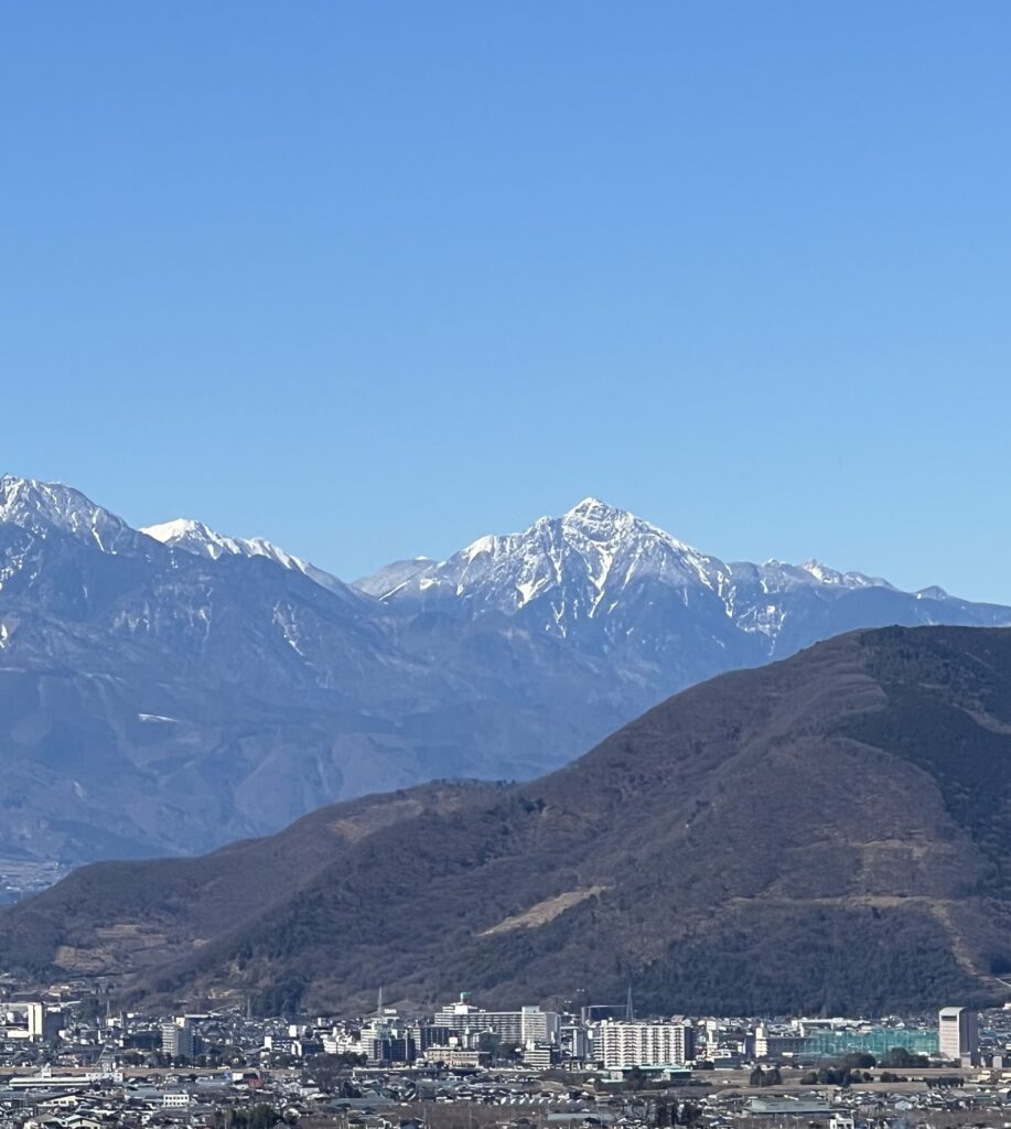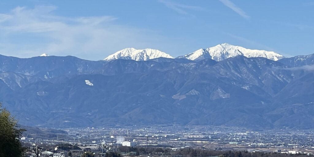 桃の季節になると勝沼あたりからの桃と南アルプスが一緒に写る景色が有名ですね。春が待ち遠しくも、まだ雪は溶けてほしくないです^ ^